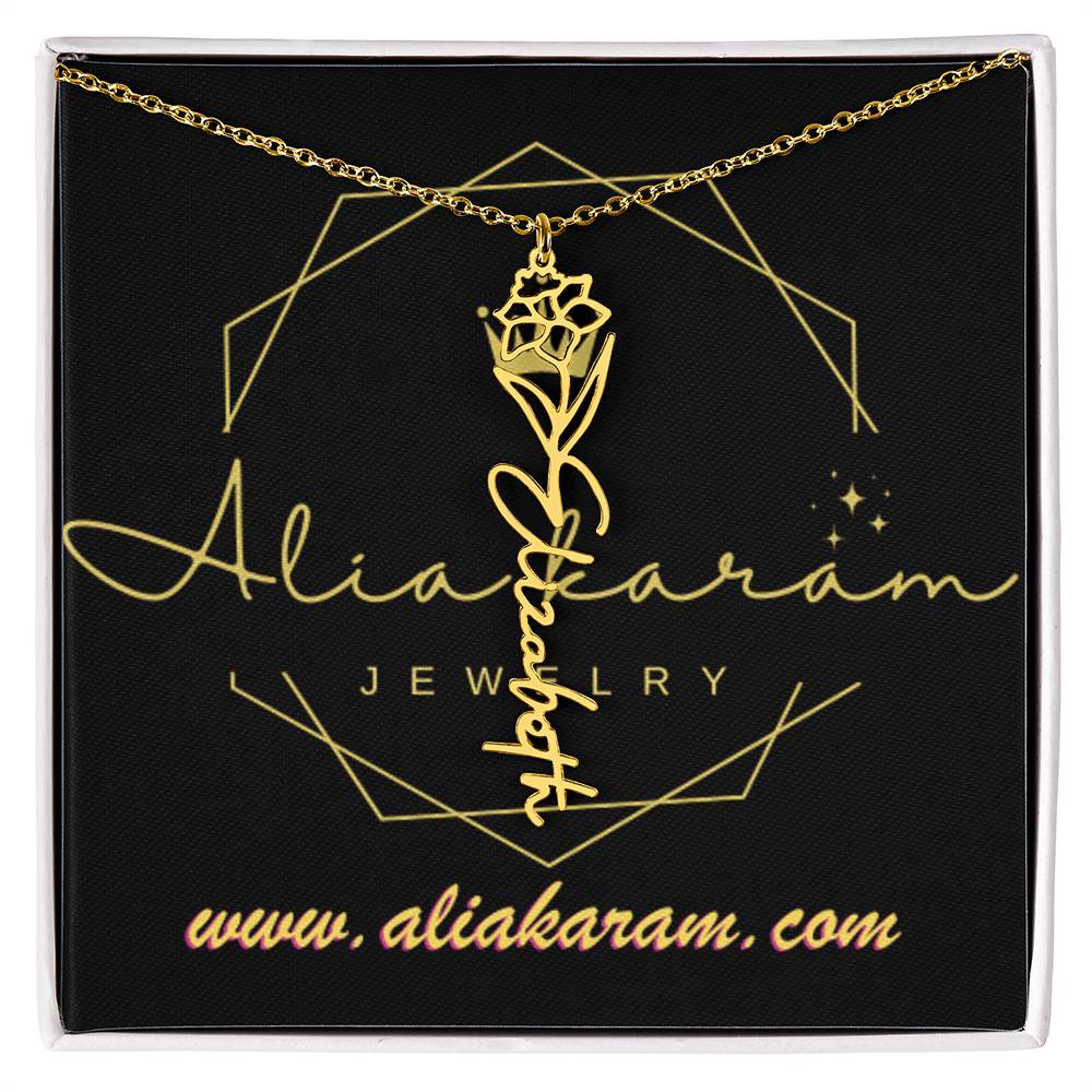 Need a gift that's as unique as she is? Then look no further than our Flower Name Necklace! With a customizable birth flower design, this necklace is a meaningful addition to any jewelry collection. Whether you're dressing up for a special occasion or simply want to add some flair to your everyday look, this necklace is perfect for your special someone. Handcrafted from high-quality materials, it is both stylish and durable. So why wait? Personalize your own floral name necklace today!