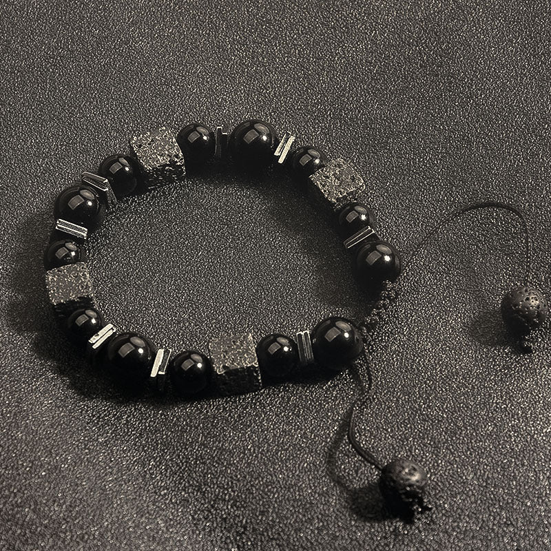 Personalized Fashion Retro Square Volcanic Rock Bracelet Men's Bracelet Obsidian Adjustable