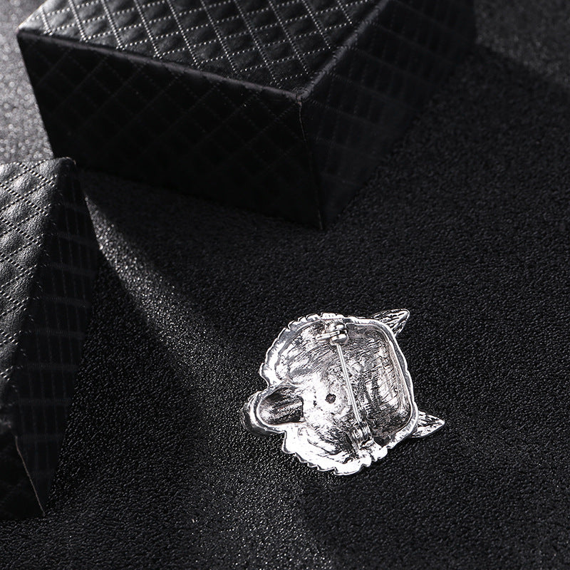 Retro Wolf Head Totem Golden M Badge Men's Brooch