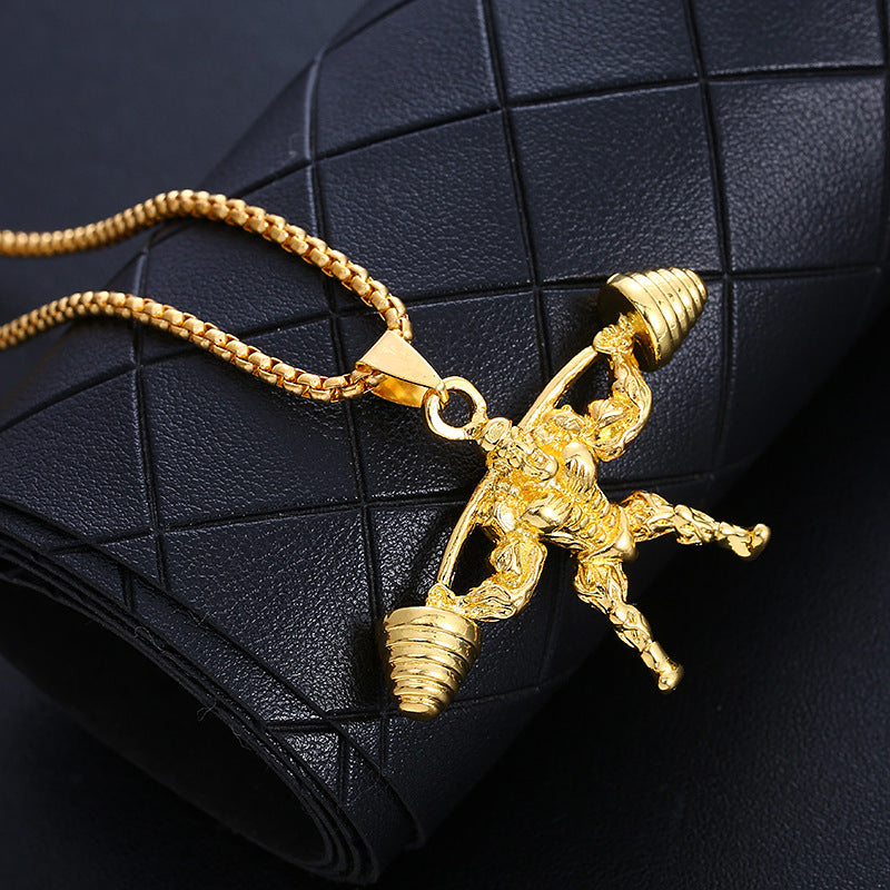 Stainless Steel Hip Hop Barbell Weightlifting Fitness Pendant Necklace